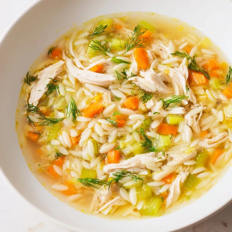 If you want a richer, creamier soup, whisk two egg yolks in a bowl and slowly add a ladle of hot broth while whisking constantly, then stir that mixture back into the soup off the heat for a classic Greek avgolemono texture. Swap the orzo for rice if you need it to be gluten free, or toss in a handful of spinach or frozen peas in the last few minutes of cooking for extra vegetables. I have also used leftover turkey after Thanksgiving, and it works beautifully. If you dont have fresh dill, dried will do, but use about a third of the amount because dried herbs are more concentrated.