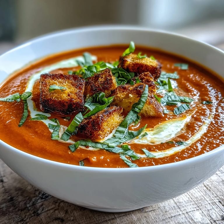 Save The first time I made roasted tomato soup, my kitchen windows were completely fogged from the steam. It was late September, and I'd just hauled home an ambitious haul from the farmers' market - ruby tomatoes still warm from the sun. The transformation that happens when you roast tomatoes is almost magical - they collapse and caramelize, their sweetness intensifying as they surrender to the heat. The aroma filled every corner of my home, drawing my neighbor over with a curious knock and an eager smile.