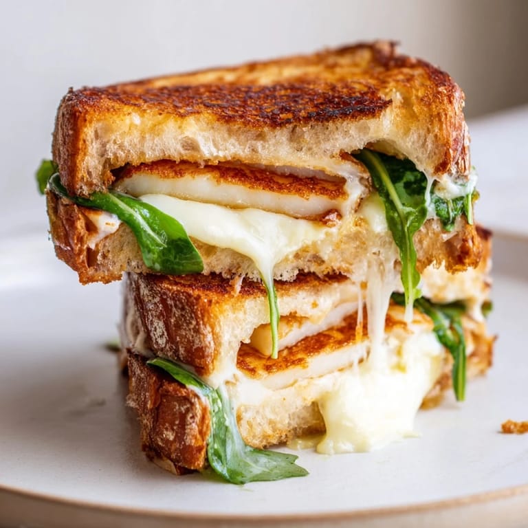 Save I discovered halloumi grilled cheese completely by accident when a block of halloumi was sitting in my fridge, stubbornly refusing to melt the way I'd hoped it would in a pasta. Rather than waste it, I wondered what would happen if I treated it like a proper ingredient that wanted to be fried first. Twenty minutes later, I was biting into something that crackled between my teeth and squeaked against the bread in the most satisfying way possible. That crunch, that golden crust, the way the cheese held its shape instead of collapsing—it felt like discovering a loophole in cooking itself.