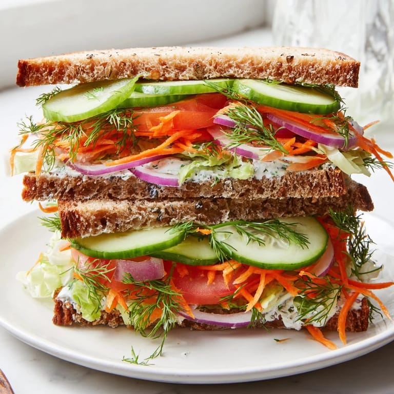 Once you understand how this sandwich works, you can play with it endlessly. I've made it with rye bread for a deli-style feeling, added thinly sliced radishes for extra bite, and even swapped in different herb spreads depending on what I have on hand. The core concept—crispy bread, creamy spread, crunchy vegetables, and assertive pickles—stays the same, but the details can shift with your mood and what's in your kitchen.