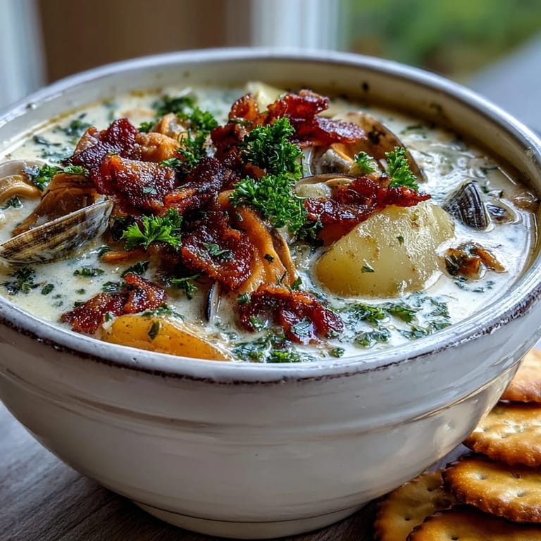 Save The first time I made New England Clam Chowder, a fierce nor'easter was battering our windows as the kitchen filled with the aroma of rendering salt pork and sweet onions cooking in butter. Our power flickered ominously, but I was determined to finish this pot of comfort before we potentially lost electricity. The storm outside made the steaming bowls taste even more satisfying when we finally sat down to eat, spoons clinking against ceramic as the wind howled.